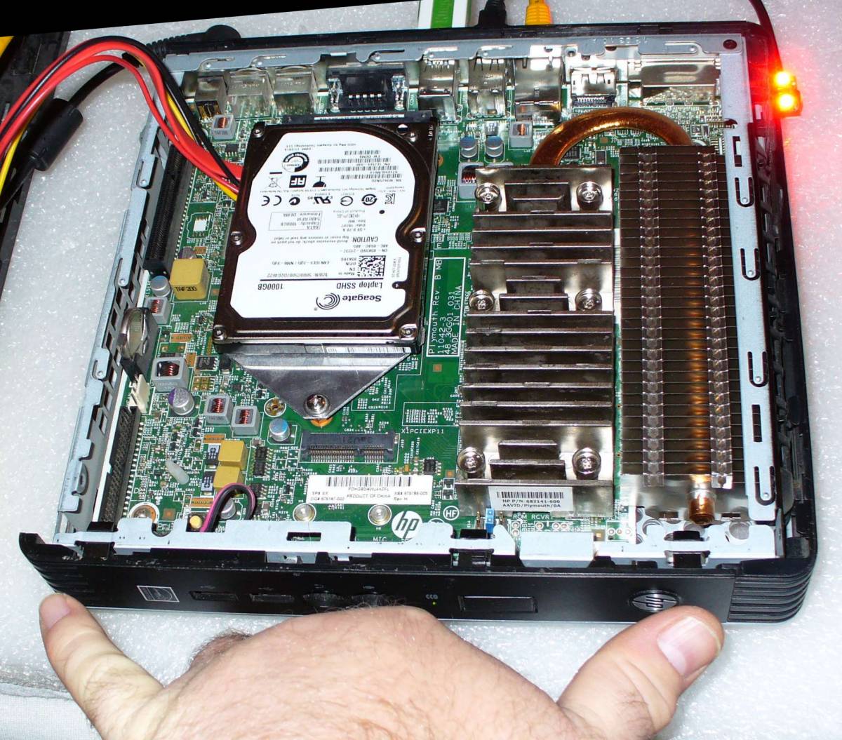 Ez a tenyérnyi kis PC alig nagyobb, mint a beleépíthetõ SATA felületû, 2,5"-os HDD/SSD. Passzív hûtésû, azaz teljesen hangtalan.