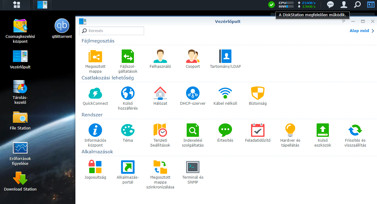 A Synology operációs rendszere ingyen letölthetõ a gyártó weblapjáról, és a hozzá készült további, telepíthetõ