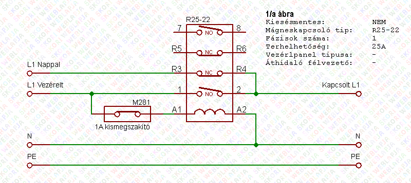 Az R25-22 és hasonló mágneskapcsolóknak 4db érintkezõje van, melyek egyenként 25A terhelhetõségûek.