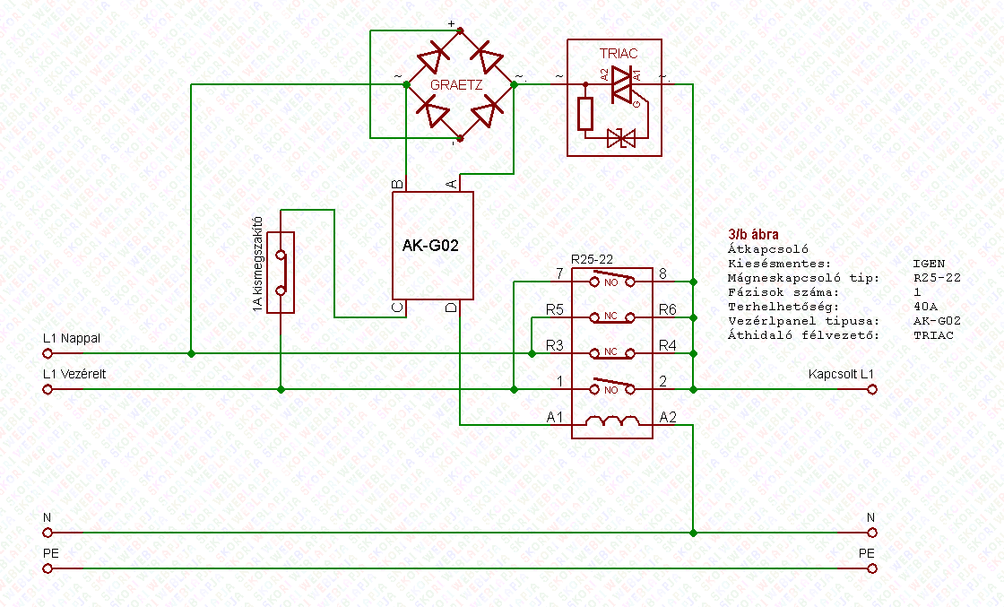 elektronikával vezérelt triak-ot), ami az átkapcsolás ideje alatt áthidalja a mágneskapcsoló érintkezojét,