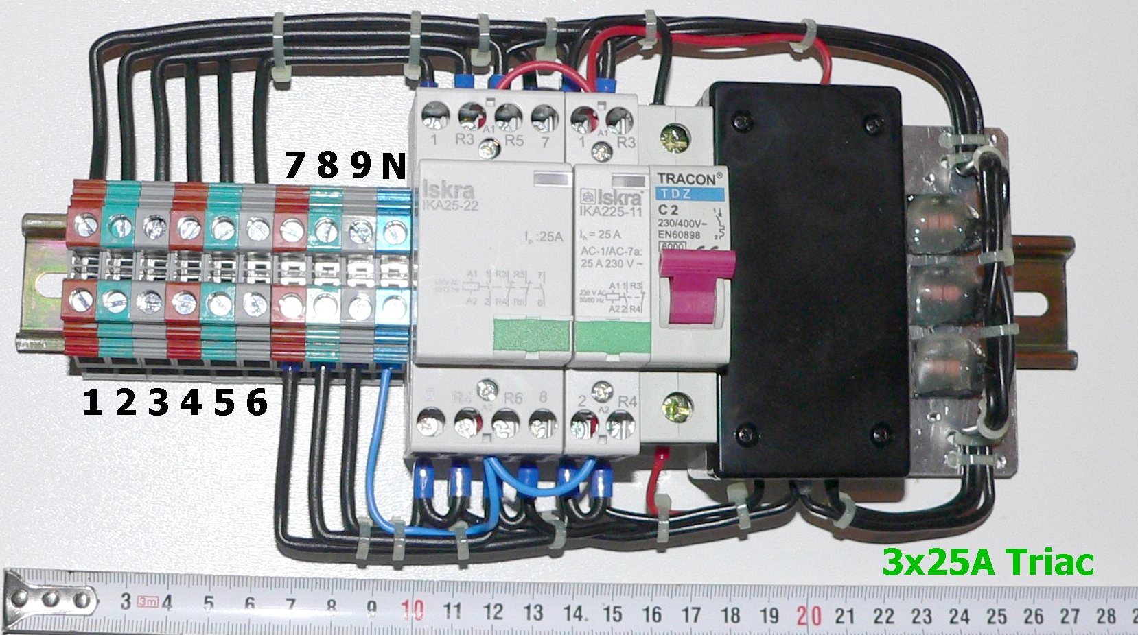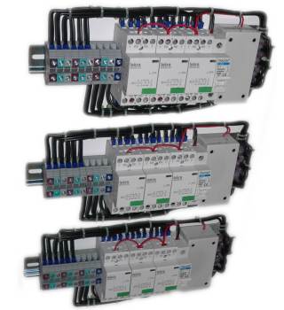 Az alábbi fotókon egy egyszerûbb 1 fázisú, és egy 3 fázisú átkapcsoló látható, szabványos C sínre (DIN sínre, kalapsínre)