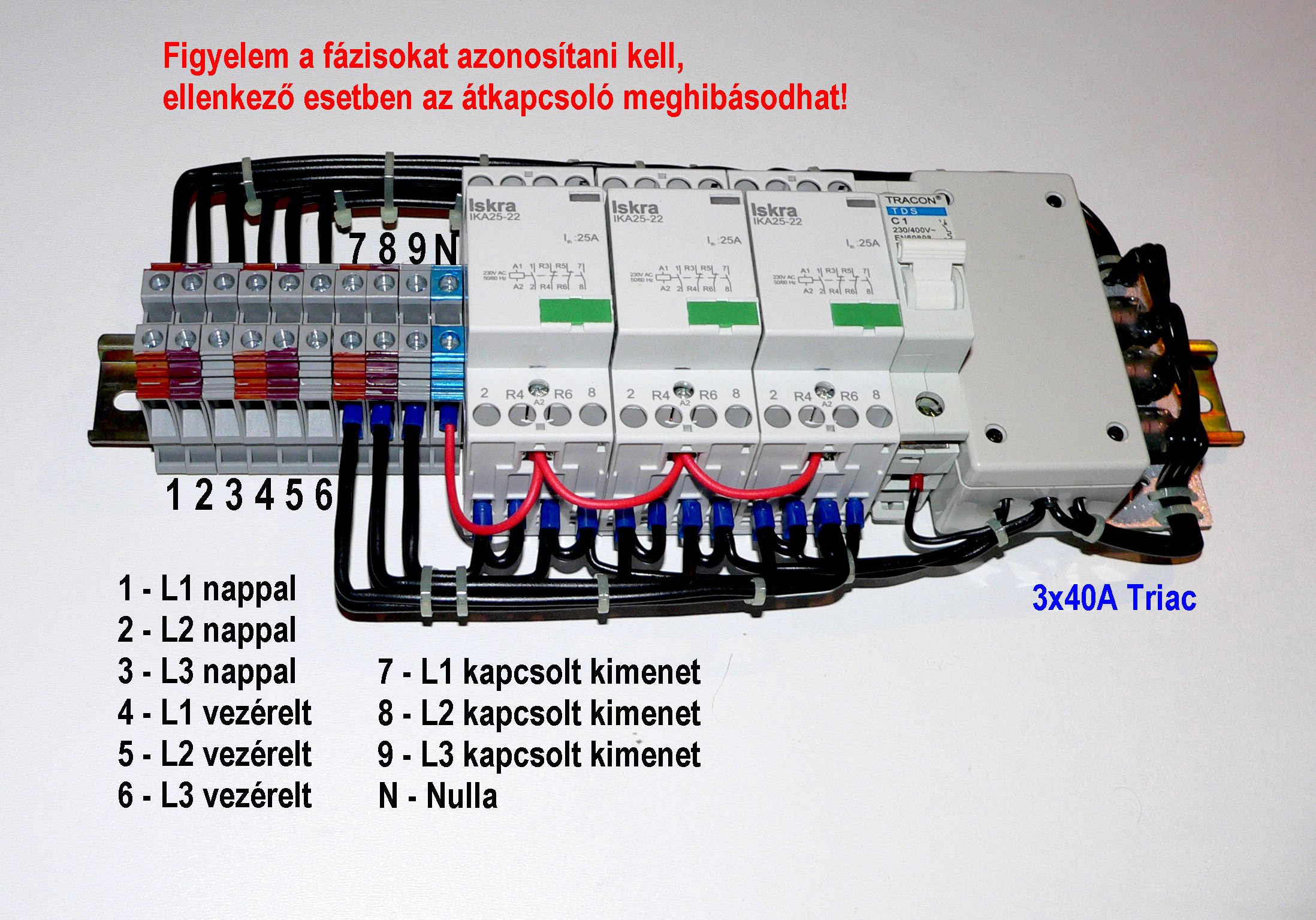 Háromfázisú megoldás esetén a fázisokat azonosítani (párosítani) kell, hogy az átkapcsolás mindig