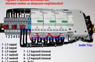 - A 3x40A-es átkapcsolók esetében kb. ugyanaz van mint terheléssel. Amikor megjelenik a vezérelt áram, akkor meghúznak a mágneskapcsolók,