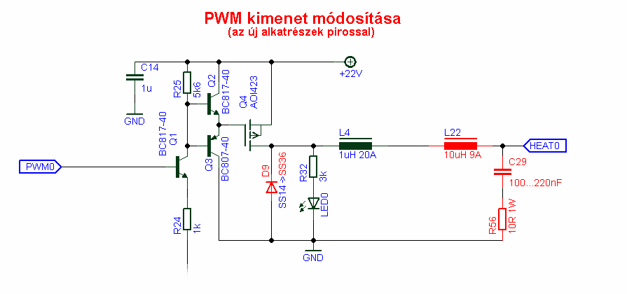 PWM-el szabályozza az MCU, a PWM frekvenciáját úgy kell megválasztani, hogy azt semmiképpen se tudja lekövetni a fütõbetét, tehát átlagolni