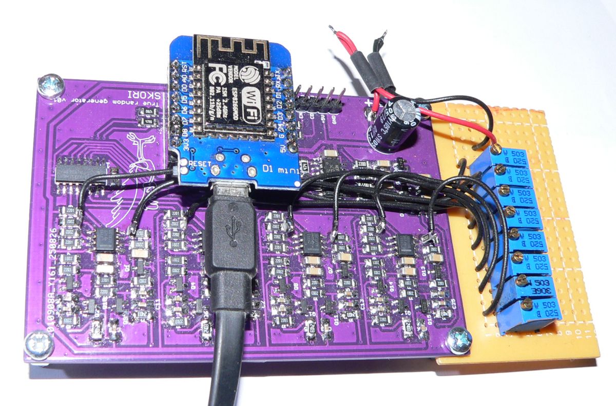 Tehát, bár a rajzon nem szerepel, de a TRNG-től kapott jelet egy MCU dolgozza fel, amihez csatlakozik egy kijelző